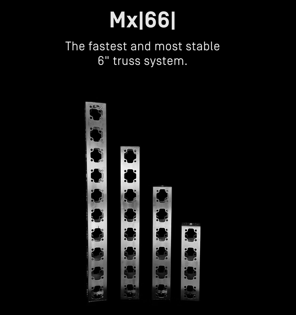 The ultimate key grip starter truck package composed of a variety of Mx|66| pieces needed for various applications, including: support for dolly track on uneven ground, and camera rigs and vehicle camera mounts.